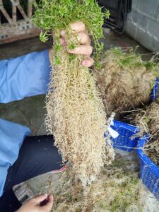 長さを揃えて草やゴミの除去作業。 雑草がどうしても混在するので、雑草除去は重要な工程です。